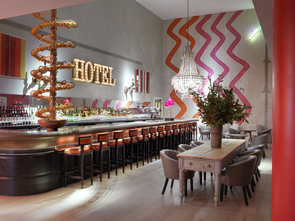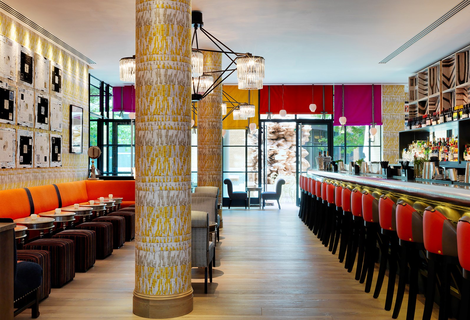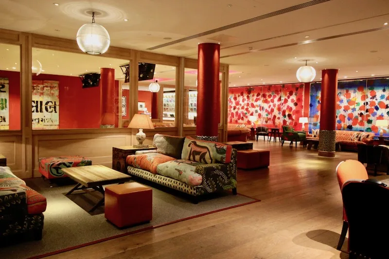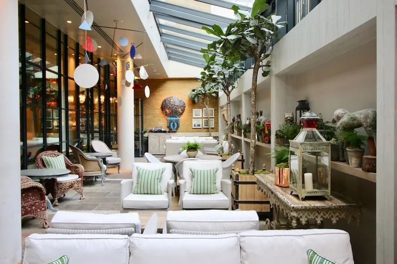 In the midst of Soho and moments from Mayfair, Ham Yard has an urban village feel. The hotel revolves around a tree-filled garden with a bronze sculpture centrepiece by Tony Cragg. Interiors are designed by Kit Kemp in her award-winning modern British style. It offers easy access to local attractions and dining, which guests often highlight. The hotel's atmosphere is noted for its eclectic and colorful design, creating a comfortable and relaxed environment.